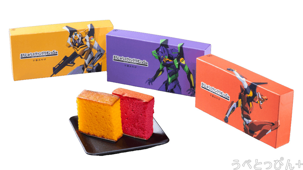 「小川蜜カス本舗」では蜂蜜を使ったカステラなどの和菓子が有名ですが、去年の第4弾に引き続き「エヴァ」をイメージしたカステラを販売しています。