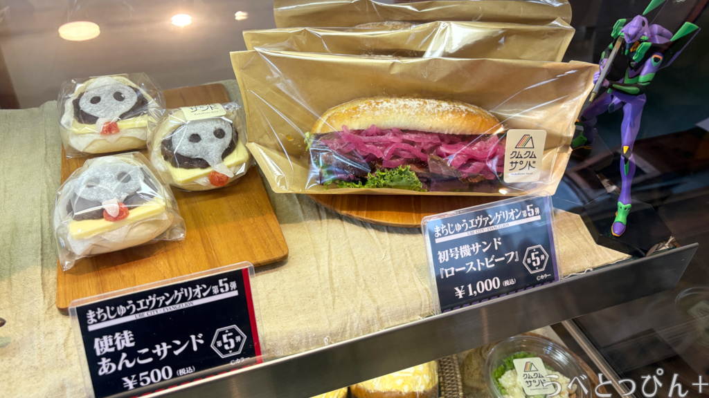 クムクムサンドではエヴァ仕様のサンドイッチや塩あんこサンドを販売しています。