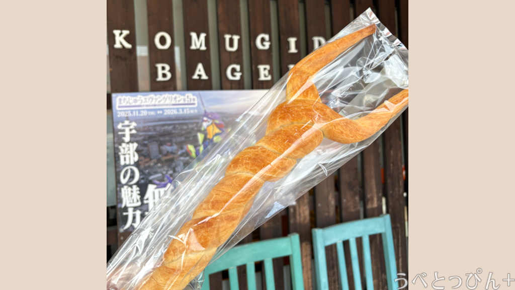 西岐波にある「小麦堂 Bagels」では、“ロンギヌスの槍”をモチーフにしたフランスパンが販売されています。