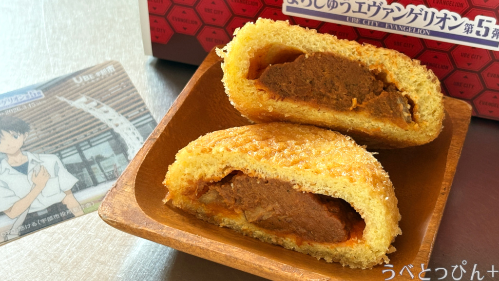 店舗で一番の人気商品である「牛肉ゴロゴロ黄金カレーパン」の中のカレールーを赤くすることで、エヴァンゲリオンの赤い海を表現されています。