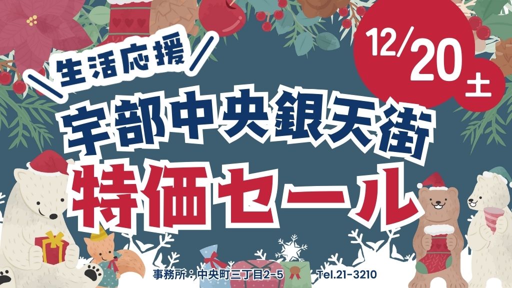 2025年12月20日(土)に、宇部中央銀天街で、特価セールが開催されます。