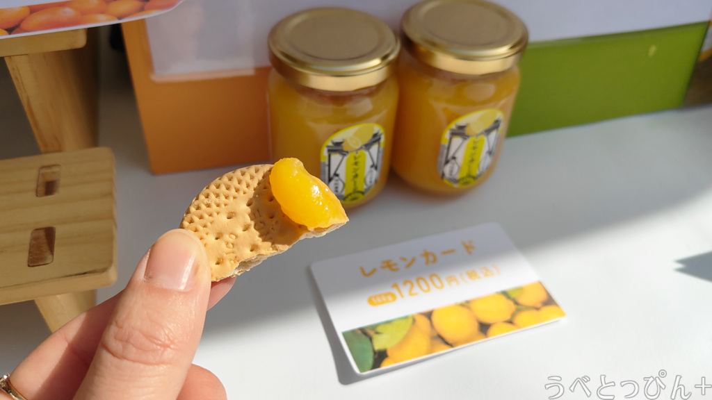 クラッカーにのせたジャムを試食して、気に入ったジャムを購入することができます。