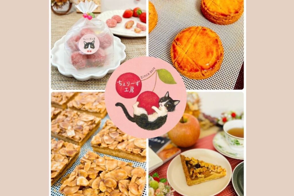 お麩ラスク、米粉クッキー、フロランタン、りんごのタルト、チーズケーキ、ガトーショコラ