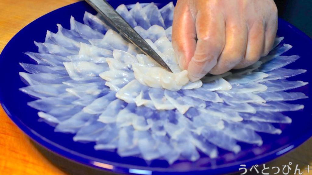 宇部市相生町にある魚屋さん「魚千代」が出品する「とらふぐ刺身セット」は、冷蔵、または冷凍商品があるので年間を通して人気の品です。