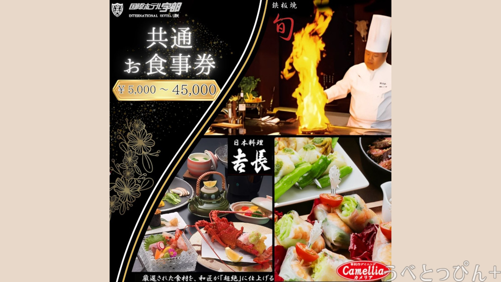 国際ホテル宇部内にある3つのレストラン「カメリア」「吉長」「旬」で使用出来る共通お食事券も人気です。