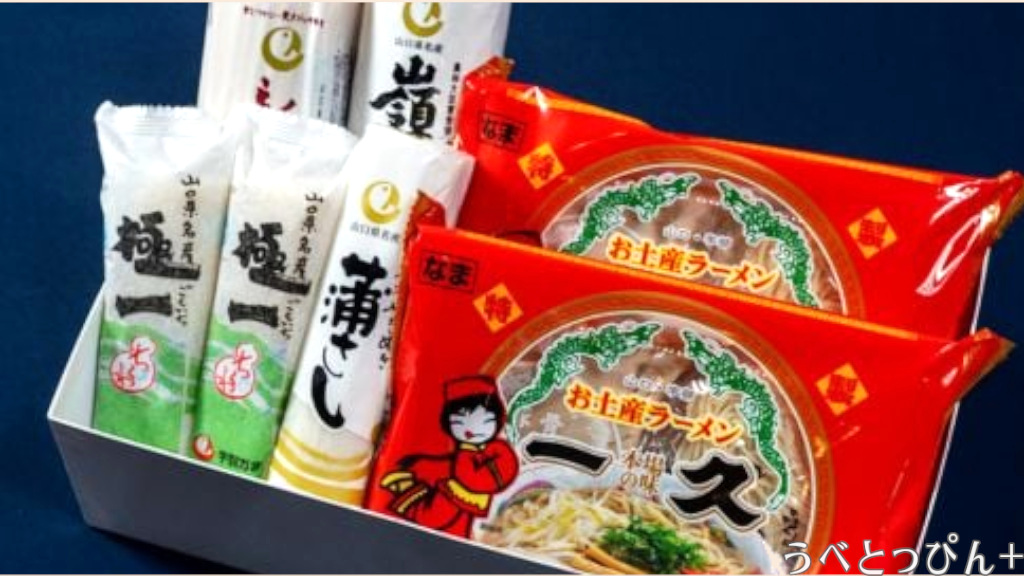 宇部市を代表する特産品の「宇部かま」と「宇部ラーメン」のセットです。