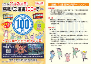 当日は、路線バスを利用するきっかけづくりのため、宇部市交通局などの一部バス路線が1乗車100円(中学生以下無料)で利用できます。